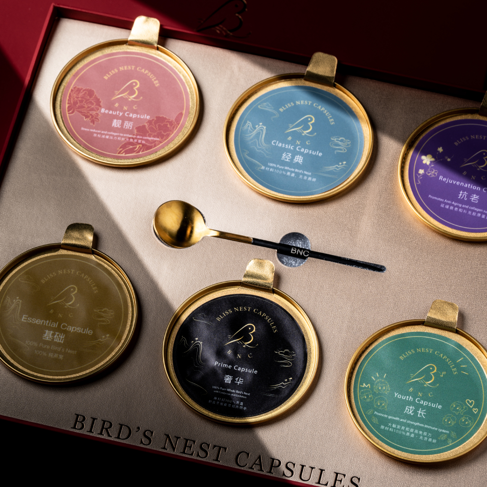 Give the gift of beauty and health with our 6-Capsule Gift Set. Thoughtfully curated, this elegant collection features six freshly stewed bird’s nest capsules in your chosen flavours, packed in a premium box that radiates sophistication.